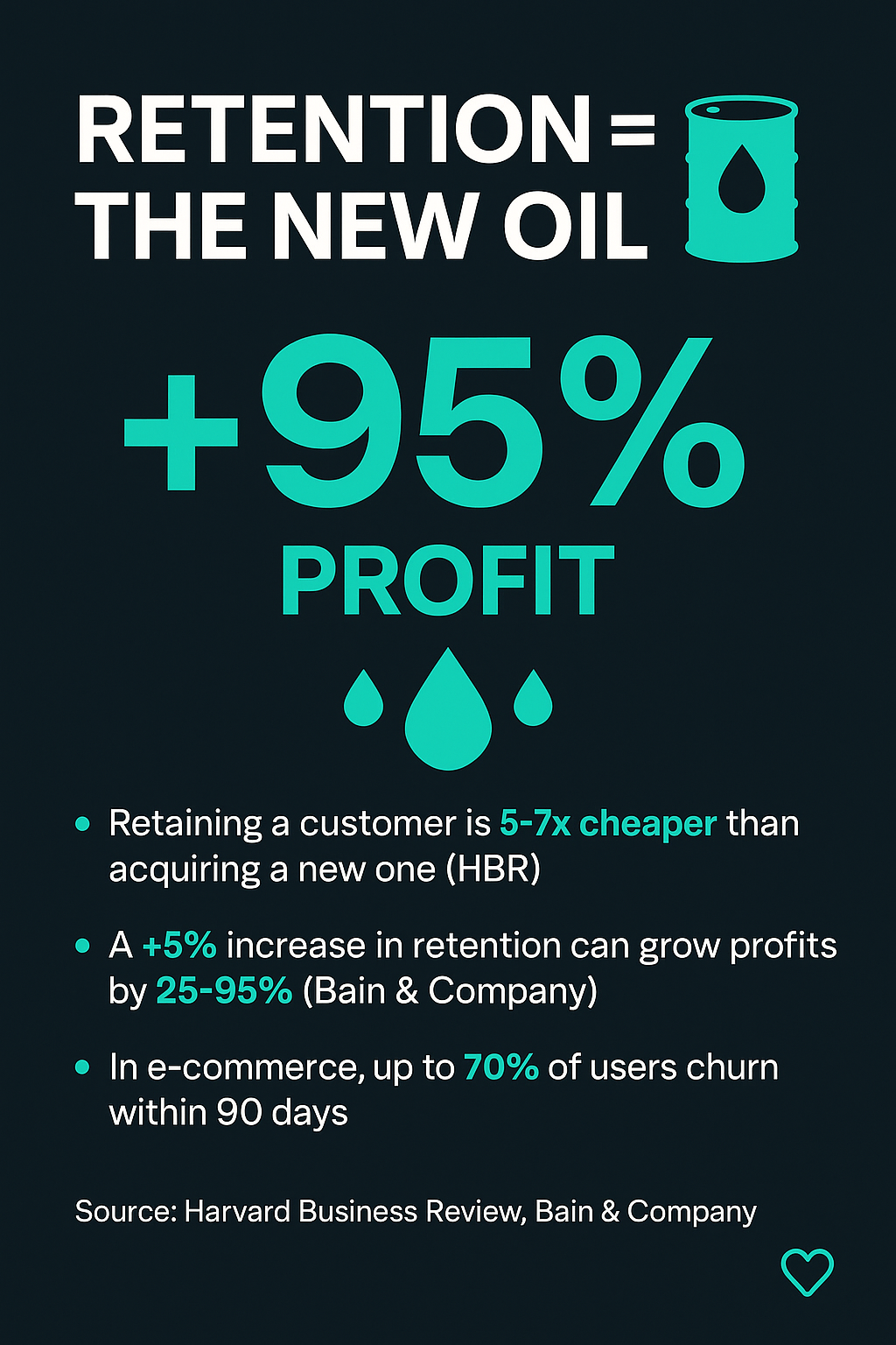 💡 Bain & Company: A 5% increase in retention can boost profits by 25–95%.